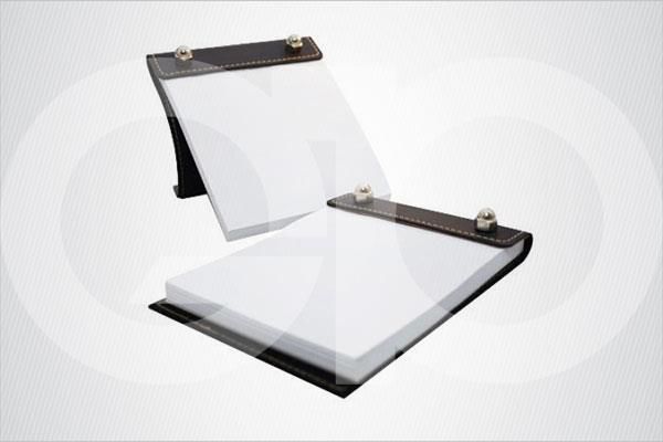 Bloco de anotações Bidins em couro sintético dois parafusos superiores, (consulte a disponibilidade das cores antes de fechar o pedido). Possui aproximadamente 100 folhas brancas sem pauta. Tamanho total aproximado (CxD): 15,6 cm x 12,2 cm.