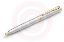 caneta de metal prata com detalhes dourados - Ideal para brinde - uma gravação já inclusa.