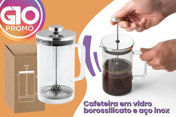 Cafeteira em Vidro Person... Cafeteira em vidro borossilicato e aço inox. Capacidade até 600 mL. Certificação EU Food Grade. Fornecida em caixa presente. ø95 x 170 mm. 1 Personalização...